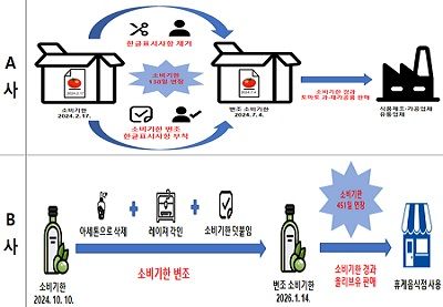 수사결과, A사와 B사는 자사에서 수입하여 보관 중인 수입식품의 소비기한이 경과하자 이를 감추고 유통·판매할 목적으로 범행을 저지른 것으로 확인됐다.