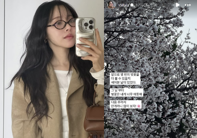 4일 이솔이는 자신의 SNS 남편 박성광과 외출한 사진 여러 장을 게재했다. 특히 벚꽃 사진을 올린 그는 “앞으로 몇 번의 벚꽃을 더 볼 수 있을지 세어본 날이 있었다. 그날부터 벚꽃은 내게 너무 애틋해. 다음주까지 만개라니 많이 보자!”라며 봄을 즐겼다.
