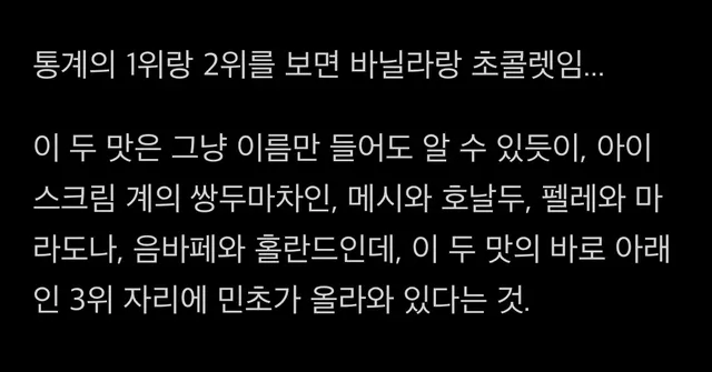 7위에 있던 민초가 최애맛 고르기로 바꾸니 갑자기 3위로 올라온 것을 볼 수 있다