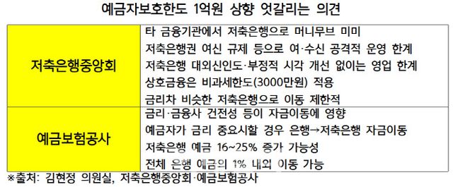 아울러 저축은행중앙회는 “저축은행에 대한 대외 신인도와 부정적 시각 개선 없이는 수신증가에 한계가 있다”며 “예보 한도가 1억원으로 상향 조정해도 저축은행을 이용하지 않던 소비자가 새롭게 저축은행을 거래할 가능성은 크지 않다”고 내다봤다.