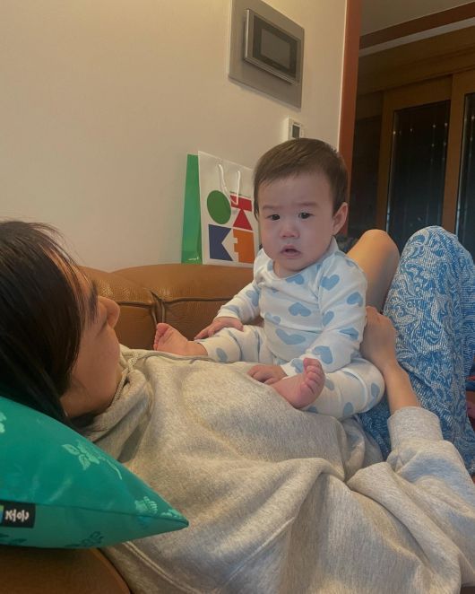 사진 속에는 아내 이은형이 아들 현조를 배 위에 올려놓고 행복한 시간을 보내는 모습이 담겨있다. 특히 몰라보게 자란 현조가 안정적으로 앉아있는 모습은 팬들의 시선을 사로잡았다.