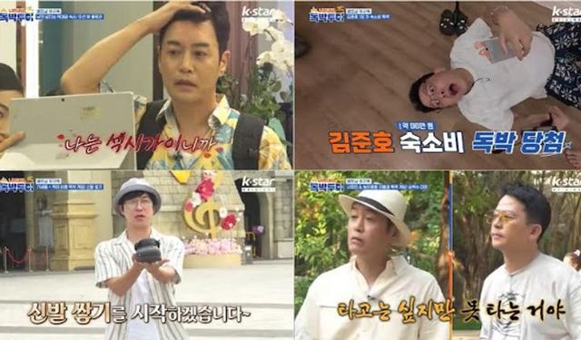 먼저 멤버들은 숙소로 이동했다. 숙소에 도착한 이들은 역대급 풀빌라 규모에 감탄하며 구경하는 것도 잠시, 잠자리와 숙소비 결제를 두고 독박 게임을 진행했다. 각자 움직이는 오리를 배치해 오리가 신발에 닿는 순서로 순위를 정하는 게임. 순식간에 1등이 된 홍인규는 냅다 위층으로 올라가 가장 좋은 방 침대에 뛰어들었고, 김대희 또한 3등이 되자 환호했다.