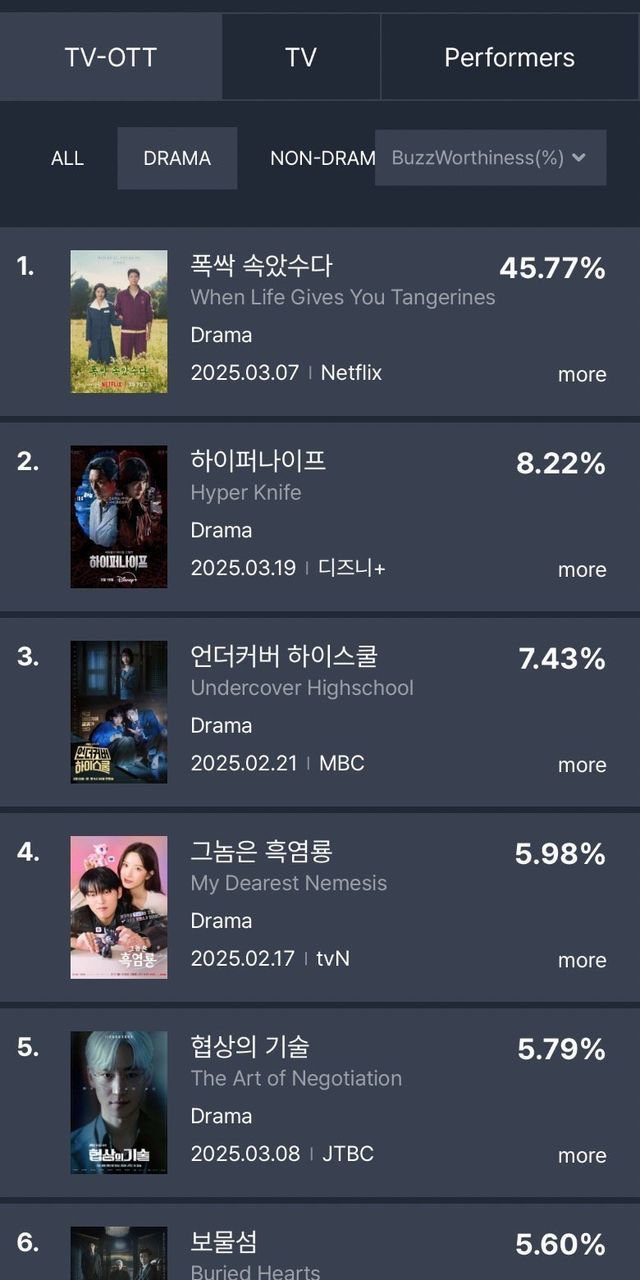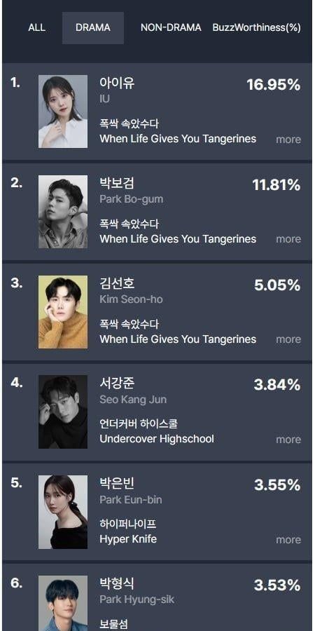 3월 4주차 TV-OTT 드라마,출연자 화제성 순위