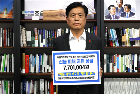 조승래 의원은 “당원들의 자발적 참여로 모인 마음이 갑작스러운 산불로 큰 어려움을 겪고 계신 안동의 이웃들에게 작지만 큰 위로가 되기를 바란다”며 “안동 뿐만 아니라 전국적인 산불로 곳곳에서 큰 피해가 발생한 만큼, 모든 이재민들이 하루 빨리 삶의 터전과 희망을 되찾기 바란다”고 강조했다.