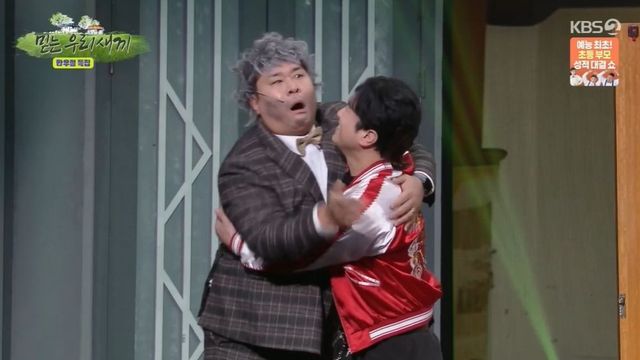 이후 문세윤은 김진곤과 티격태격했고, 김진곤은 “내가 아직도 ‘웃찾사’ 후배로 보이나”라고 발끈했다. 문세윤은 “미쳤나. 돌았어?”라고 당황했고, 김진곤은 “여기 ‘개그 콘서트’야”라고 외쳤다.
