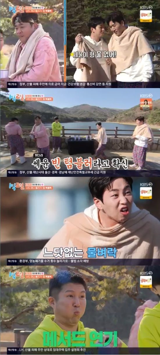 6일 방송된 KBS 2TV '1박 2일 시즌4'에서는 김종민, 문세윤, 조세호, 이준, 딘딘, 유선호의 경남 양산 여행기가 전파를 탔다.