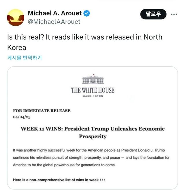 위대한 트럼프 령도자 지휘 아래 승리를 이어나가는 중...단어 선택이 독재자 빠는 수준으로 바뀜