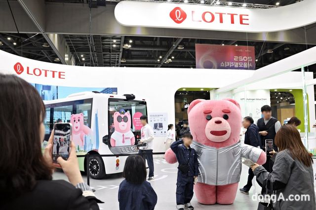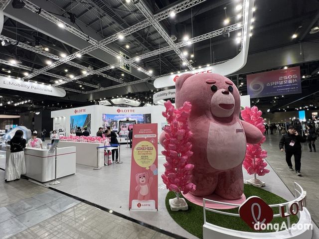 롯데그룹이 롯데이노베이트를 앞세워 경기도 고양시 킨텍스에서 열린 ‘2025 서울모빌리티쇼’에 처음 참가한 가운데 롯데홈쇼핑 인기 캐릭터 벨리곰이 관람객 시선을 강탈하고 있다.