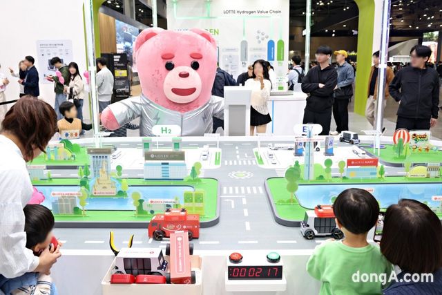 한편 롯데 부스에는 롯데이노베이트 자회사 EVSIS가 개발한 메가와트(MW)급 초급속 전기차 충전기도 전시됐다. 1000kW급 이상 전력 충전이 가능한 충전기다. 대형 전기 상용차와 도심항공모빌리티(UAM) 등 대용량 배터리가 장착된 모빌리티에 적합한 충전기로 일반적인 전기차는 약 5분 만에 완충이 가능하다고 한다.