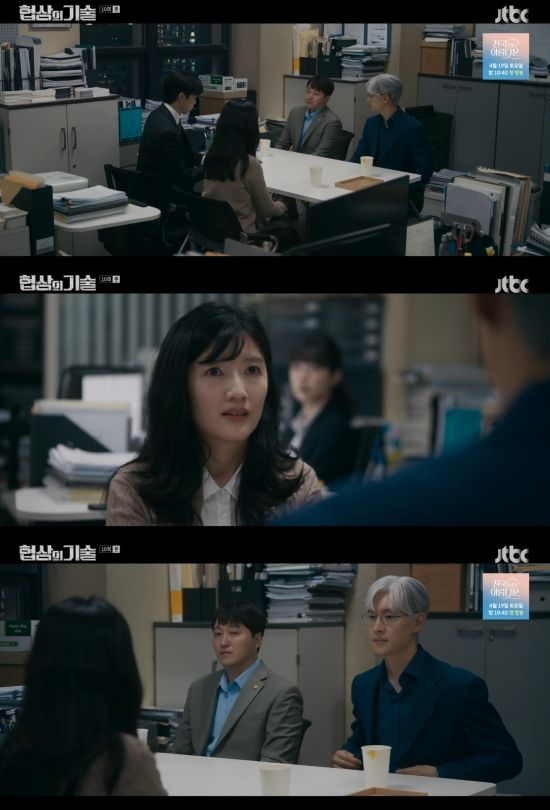 6일 방송된 JTBC 토일드라마 '협상의 기술' 10회에서는 정본주(장소연 분)가 윤주노(이제훈)에게 이형택(손종학)이 10억을 횡령했다는 사실을 밝힌 모습이 그려졌다.
