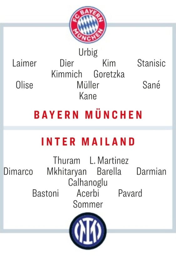 현재 알폰소 데이비스, 다요 우파메카노, 이토 히로키, 자말 무시알라는 부상으로 인해 시즌 아웃이 사실상 확정된 상태이다. 마누엘 노이어, 알렉산다르 파블로비치, 킹슬리 코망도 인터밀란전을 앞두고 출전할 수 있을지 의심되고 있다.