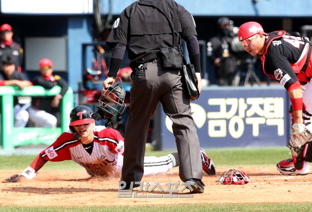 KIA 좌익수 이우성이 한 차례 공을 뒤로 빠트려 2루 주자 구본혁도 여유 있게 득점했다. 그 사이 3루까지 내달린 박해민은 속도를 늦추지 않고 홈으로 질주했다. 다시 공을 잡은 이우성이 너무 안일하게 생각하고 2루로 천천히 공을 던진 틈을 파고든 것. KIA로선 안 줘도 될 1점을 더 내준 셈이었다.