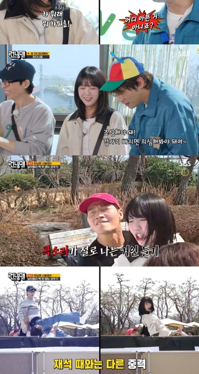 이후 지예은을 들어올린 멤버들은 "좀 다르다"며 놀라워했고 헹가래가 끝난 후 유재석은 "토할 것 같아"고 말해 '몸무게 논란'에 불을 지폈다. 경비가 10만원으로 오른 가운데 멤버들은 최다니엘이 좋아하는 메뉴인 순대국밥으로 점심을 해결했다.