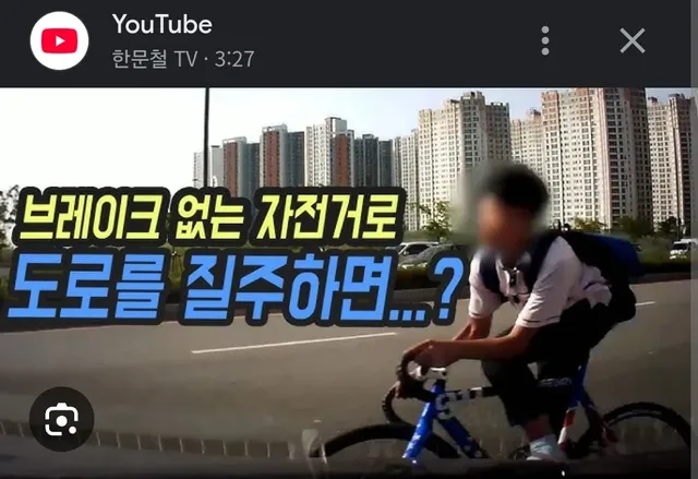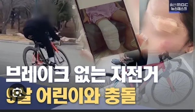 브레이크, 지지대 없는 픽시 자전거 구해와가지고.