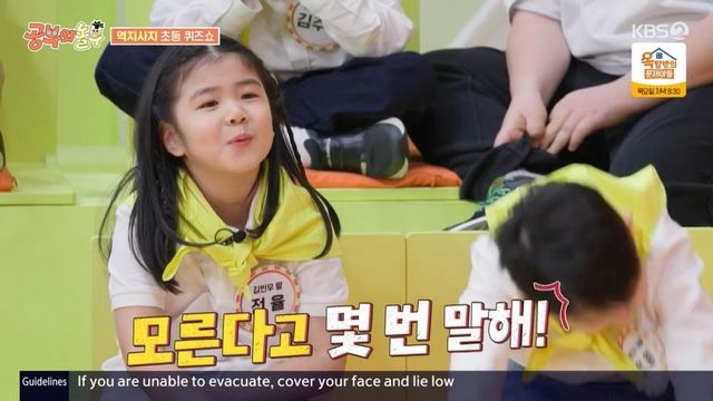 김빈우는 율이를 긴급 호출, 캐나다 수도가 뭔지 물었지만, 율이는 “아 몰라”라고 답했다. 이어 강호동이 인도의 인사말을 묻자 김빈우는 또 율이에게 도움을 청했다. 그러자 율이는 “아 모른다고. 왜 자꾸 물어봐”라고 말해 스튜디오를 웃음바다로 만들었다. 강호동은 “전율양. 나 진짜 팬 됐다. 톤이 장난 아니다”라며 웃었다.