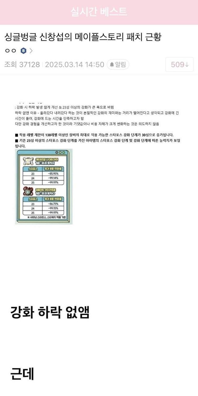 한 달 전에 강화상한선 확대패치로 실베까지 가며