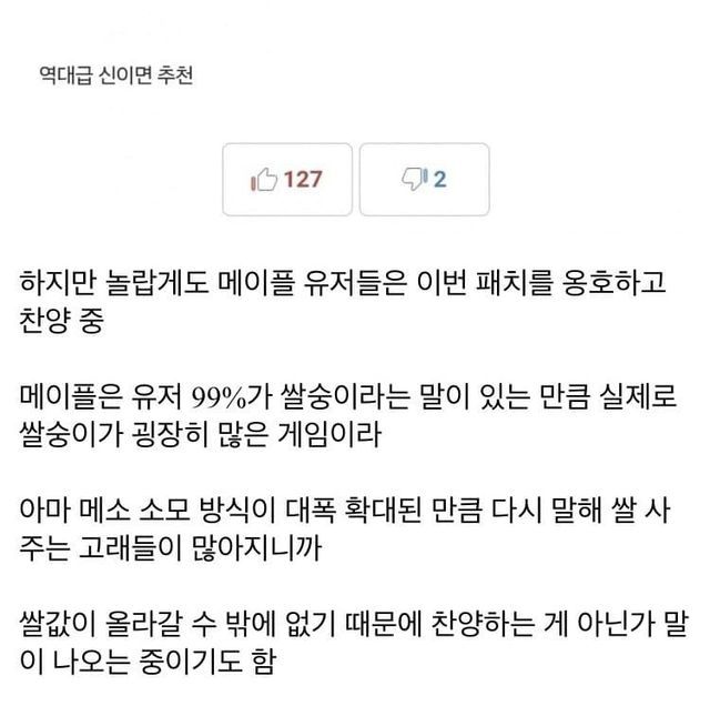 오히려 저 패치로 기존 고스펙들마저 다 접었는지 쌀값이 기하급수적으로 떨어져