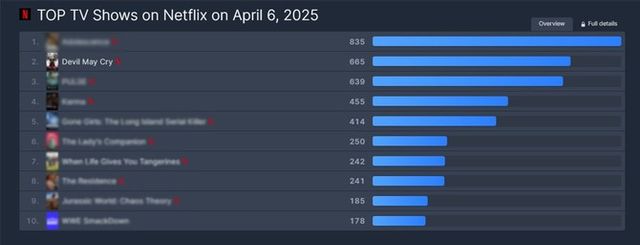 애니메이션 데빌메이크라이는 지난 3일 전 세계에 공개된 직후 폭발적인 시청률을 기록하며, 넷플릭스 사용 국가 91개국에서 TV쇼 부문 톱 10에 진입했다. 넷플릭스 글로벌 전체 기준으로는 2위에 이름을 올렸다.