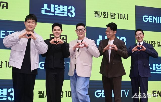 7일 오후 서울 구로구 신도림 디큐브시티 더 세인트에서 지니TV 오리지널 드라마 ‘신병3’(연출 민진기·조제욱, 극본 윤기영·강고은) 제작발표회가 열렸다. 현장에는 김민호, 김동준, 오대환, 남태우, 김현규, 민진기 감독이 참석했다.