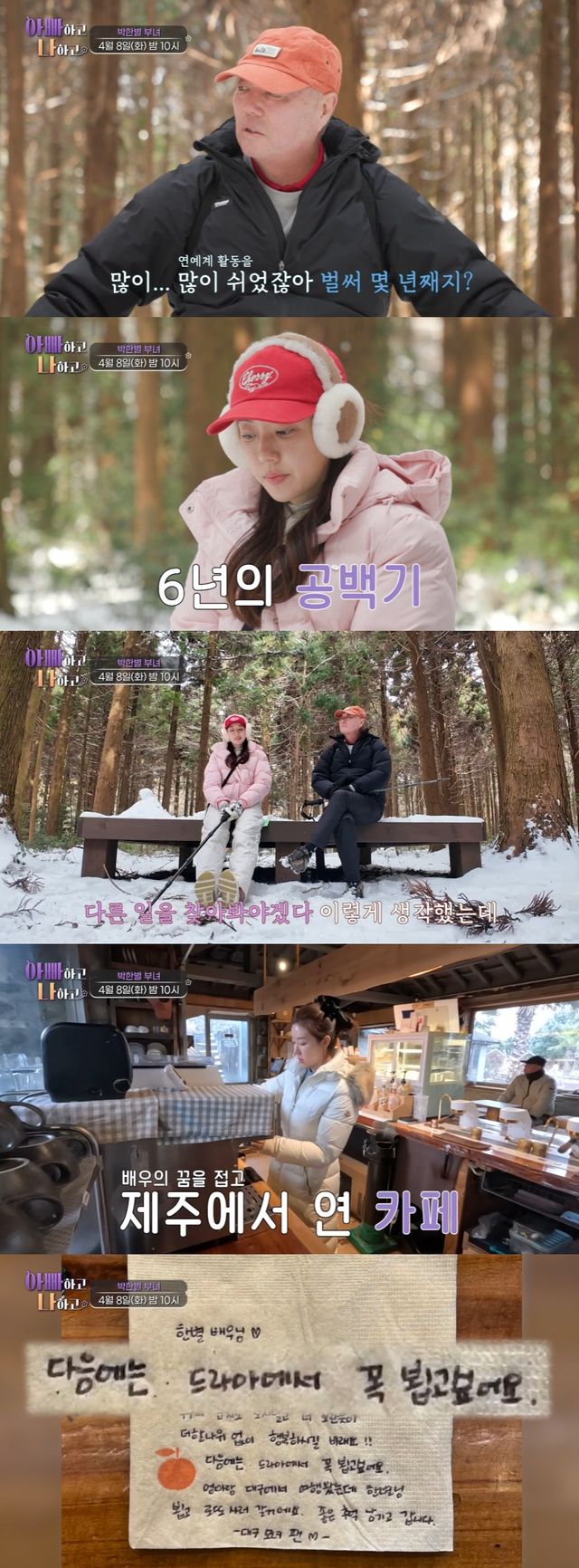 이어 화면에는 제주도에서 카페를 운영하던 박한별의 모습과 그가 팬들에게 받은 쪽지들이 공개됐다.