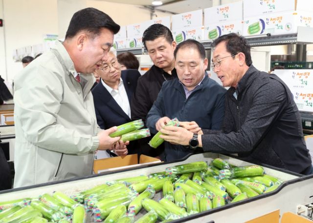 이 시장은 이날 오후 흥덕구 옥산면 청원생명애호박 공동선별장을 방문해 올해 예상 작황, 매출액 등을 살피고 지원이 더 필요한 부분은 없는지 현장 애로사항을 경청했다.