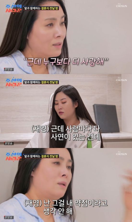 또 양수경은 갑작스럽게 눈물을 터트렸고, 윤채영 씨는 함께 눈물을 흘렸다. 양수경은 "우리 아기 이제 다 컸네. 이제 결혼하면 아기가 아닌 거잖아. 이제 어른 되는 거다. 내일 절대 눈 마주치지 않기"라며 당부했고, 윤채영 씨는 "혼난 거 생각하겠다. (내가) 대든 거 생각해라"라며 농담했다.