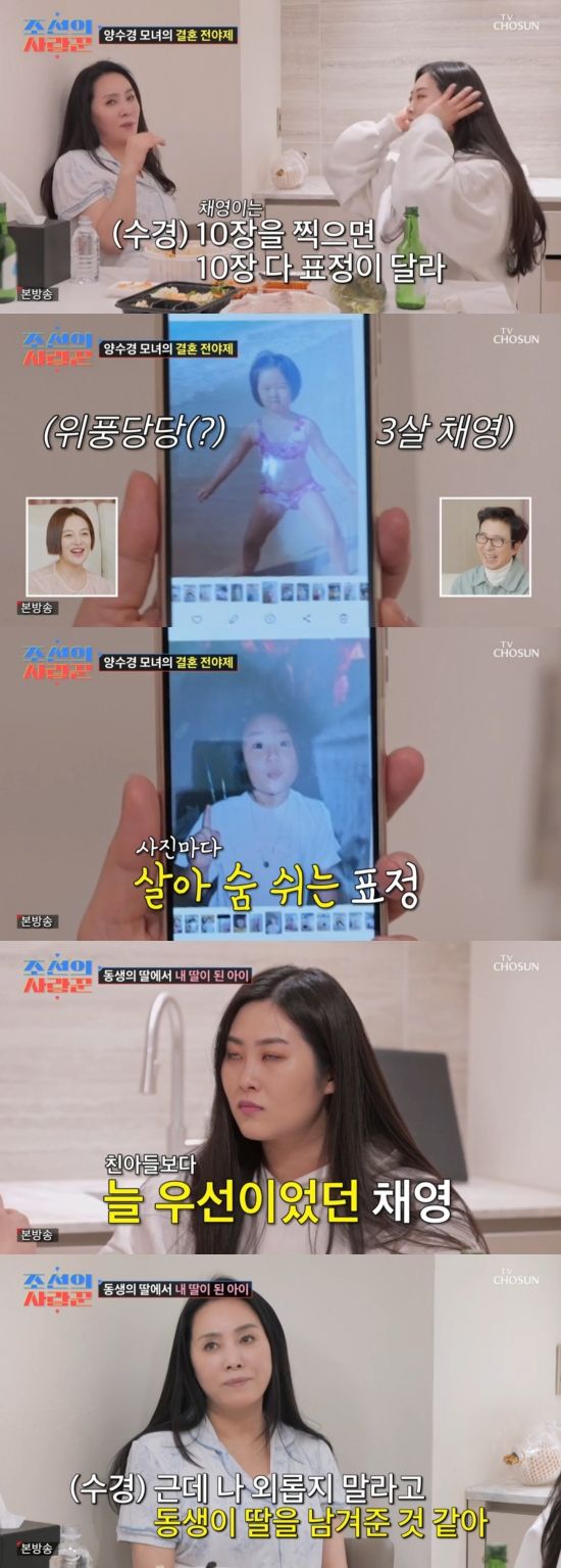 7일 방송된 TV조선 '조선의 사랑꾼'에서는 양수경이 결혼식을 앞둔 딸 윤채영 씨와 술을 마시는 장면이 전파를 탔다.