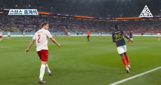 성재: 요아킴 안데르센, 몸싸움으로 볼 벗어납니다.