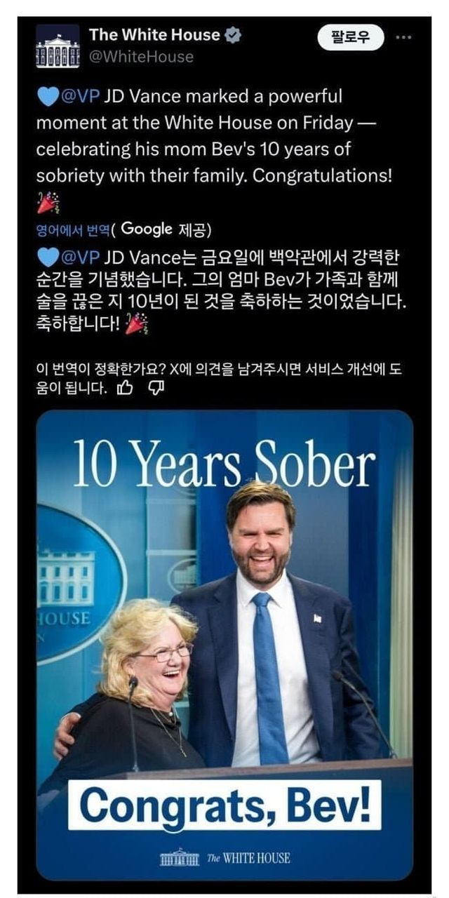 부통령 애미 금주 10주년 기념 축하 파티함