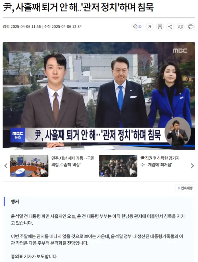 尹, 사흘째 퇴거 안 해.. '관저 정치'하며 침묵