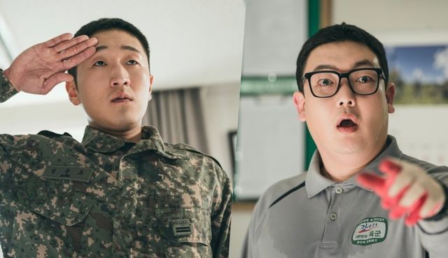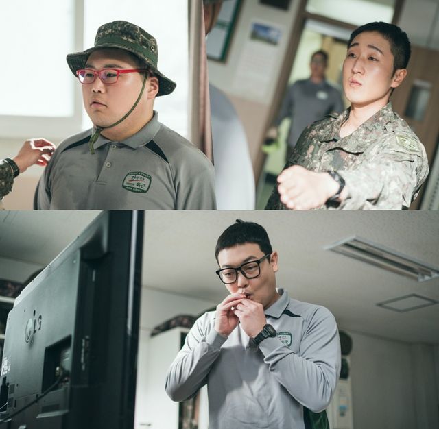 그런 가운데 공개된 사진 속에는 마침내 돌아온 성윤모와 조우한 박민석의 모습이 담겼다. 입까지 떡 벌린 채 당황함을 감추지 못하는 박민석. 그 앞에 서 있는 이는 여전히 어정쩡한 경례 자세를 버리지 못한 성윤모다. 이어진 사진 속 신병 문빛나리와 성윤모의 미묘한 만남은 호기심을 자극한다.