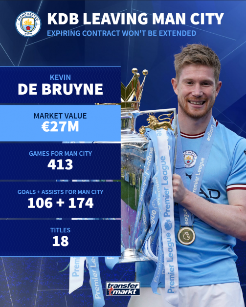 한편 더 브라위너는 지난 2015년 볼프스부르크(독일)를 떠나 맨시티에 합류한 뒤 10년 동안 활약 중이다. 그는 맨시티에서만 공식전 414경기 106골 176어시스트를 올렸다. 이 기간 맨시티는 EPL 6회·잉글랜드 풋볼리그 컵 5회·잉글랜드 축구협회컵 2회 등 우승 트로피를 품었다. 특히 2022~23시즌에는 유럽축구연맹(UEFA) 챔피언스리그(UCL) 우승 포함 트레블(3관왕)의 핵심 주역으로 활약했다. 맨시티가 UCL에서 우승한 건 2022~23시즌이 처음이었다.