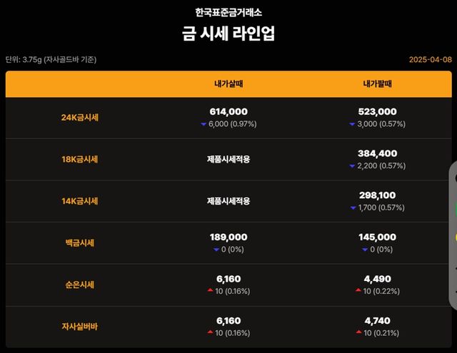 순금(24K) : 매입가 61만 5000원 / 매도가 52만 2000원