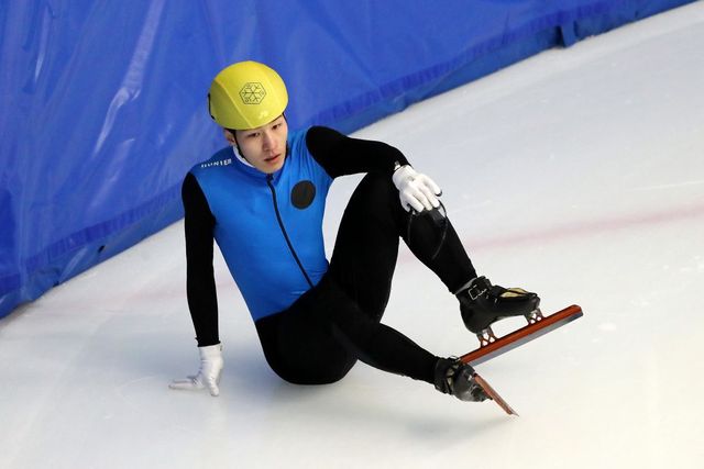 2022년 서울 노원구 태릉선수촌 실내빙상장에서 열린 2022-2033 시즌 쇼트트랙 국가대표 1차 선발대회 남자부 1500M 준결승 1조 경기에서 강원도청 황대헌이 넘어진 뒤 일어서고 있다. / 뉴스1
