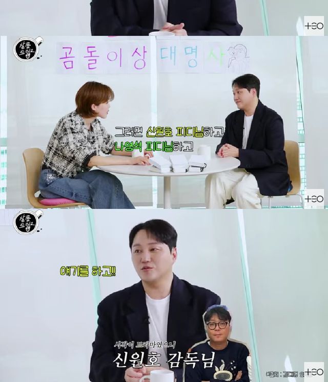 장도연은 "항간에 에그의 아들 자리를 노린다는 소문이 있다"라며 나영석 PD, 신원호 PD, 이우정 작가, 이명한 대표 네명이 주축이 된 '에그이즈커밍' 제작사를 언급했다.