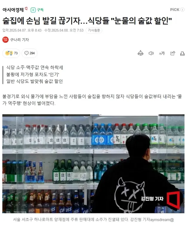 전문가들은 손님을 끌어모으기 위해 술값에서 손해를 보더라도 소주 반값, 맥주 무료 등을 걸고 장사하는 곳이 늘어났다고 분석했다. 불황으로 손님이 줄자 상대적으로 마진율이 높은 소주·맥주 가격을 깎게 됐다는 것이다. 메인 메뉴 가격은 식품 자재비와 인건비 등의 부담이 커 현실적으로 내리기 어렵기 때문이다.