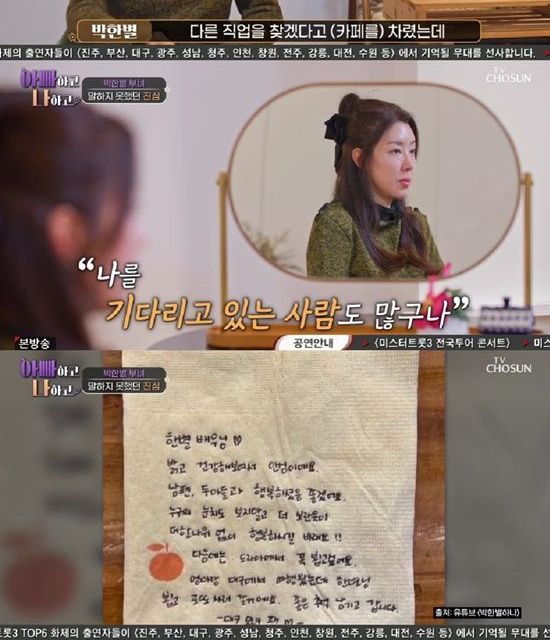 박한별의 아버지는 "아빠 입장에서는 (네가) 많이 쉬었잖아. 이제 다시 복귀해서 너 하고 싶은 것도 해라"며 조심스럽지만 진심 어린 마음을 전했다.
