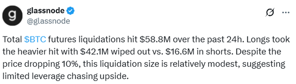 글래스노드 분석진은 일일 청산 대금 규모가 약 6천만 달러(한화 약 886억 원)에 달했으나, 비트코인 가격 낙폭을 봤을 때는 양호한 수준의 충격이었다고 전했다. 최근 청산 내역 봤을 때 시장 참여자 심리와 수요가 롱 포지션에 몰렸던 것은 사실이지만, 그 정도가 과도하지는 않았다는 설명이다.