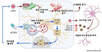 이를 토대로 연구팀이 개발한 미토파지 촉진제 ALT001은 HSV-1 감염을 억제하고 신경 염증을 완화하는 효과를 보였다.