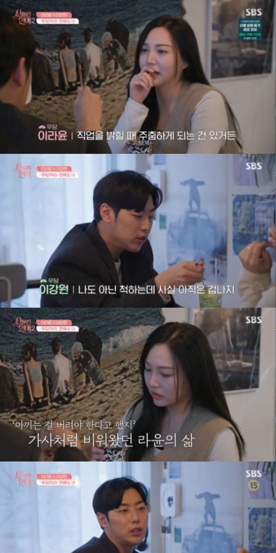 이날 방송에서 이라윤의 지목으로 이라윤과 이강원이 데이트를 나섰다. 이라윤은 무당이 된 후 힘들었던 것들에 대한 속내를 드러내면서 이강원과 깊은 대화를 나눴다.