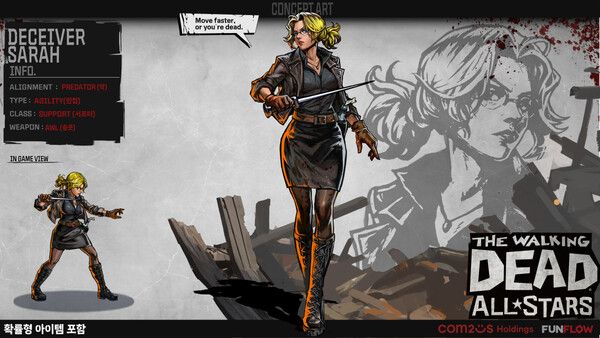 ‘워킹데드: 올스타즈’는 펀플로가 개발하고 컴투스홀딩스가 글로벌 서비스하는 수집형 RPG다. 좀비 신드롬을 일으킨 ‘워킹데드’ I·P를 기반으로 한다.
