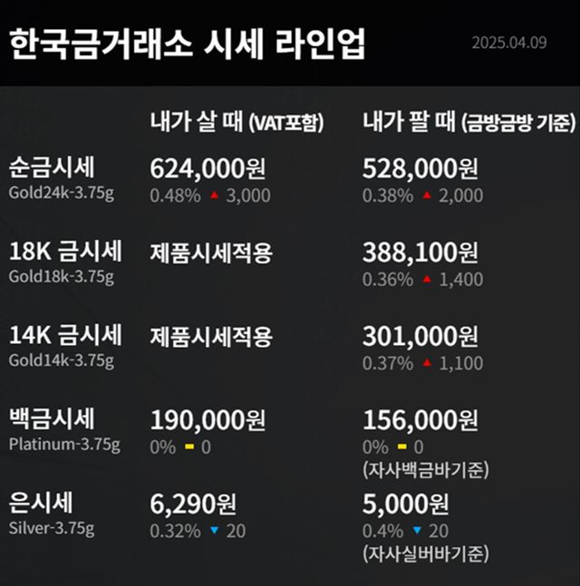 순금(24K) : 매입가 62만 9000원 / 매도가 53만 3000원