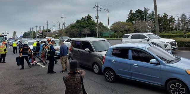 9일 제주도소방안전본부에 따르면 이날 오후 3시 13분쯤 강정동의 한 도로에서 차량 6대가 잇따라 추돌하는 사고가 발생했다. 이 사고로 30대 여성 1명이 경상을 입어 인근 병원으로 이송됐다. 나머지 사고 차량 탑승자는 모두 자력으로 탈출한 것으로 알려졌다.