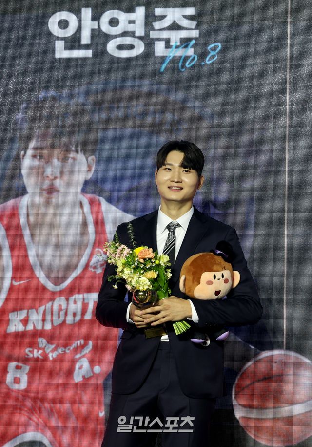 서울 SK의 안영준은 9일 서울 강남구 그랜드인터컨티넨탈 서울 파르나스 호텔에서 열린 2024~25 KCC 프로농구 시상식에서 기자단 유효투표수 111표 중 89표를 얻어 국내선수 MVP에 뽑혔다. 팀 동료이자 MVP를 두고 경쟁했던 김선형(19표)을 70표 차로 크게 제쳤다.