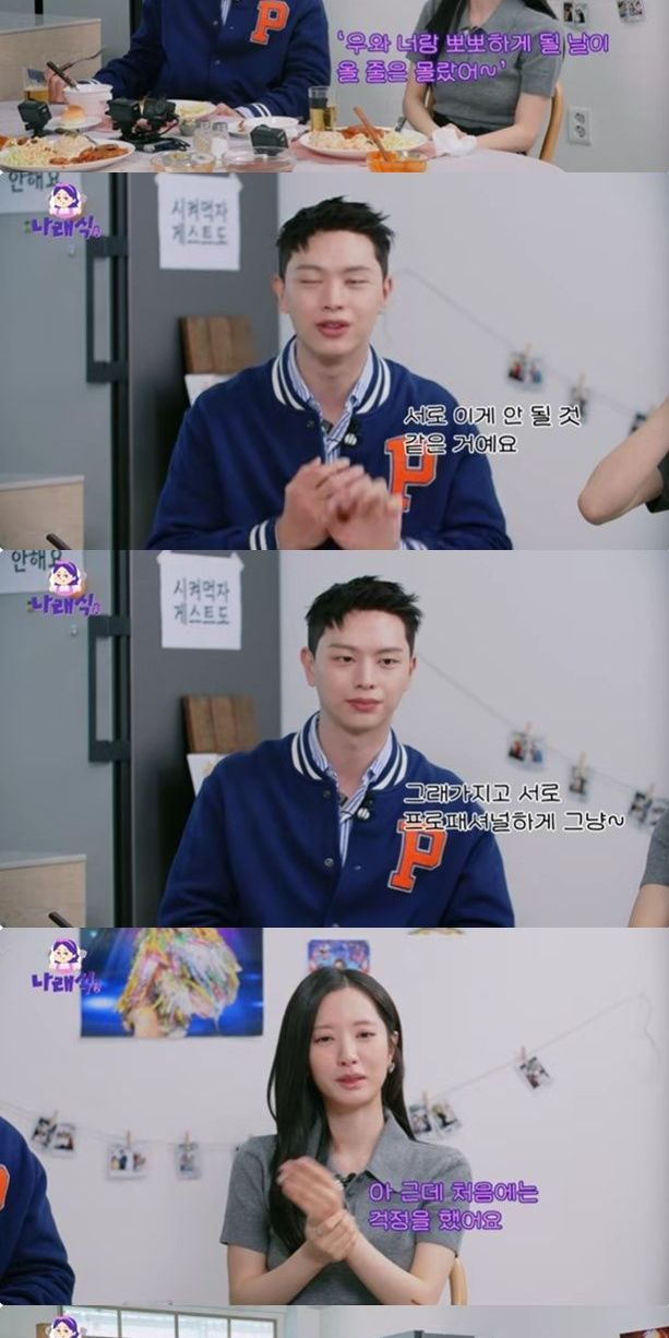 육성재는 "한명이 어색해하면 이게 안 될 것 같더라. 서로 프로페셔널하게 했다"라며 담담하게 말했다.