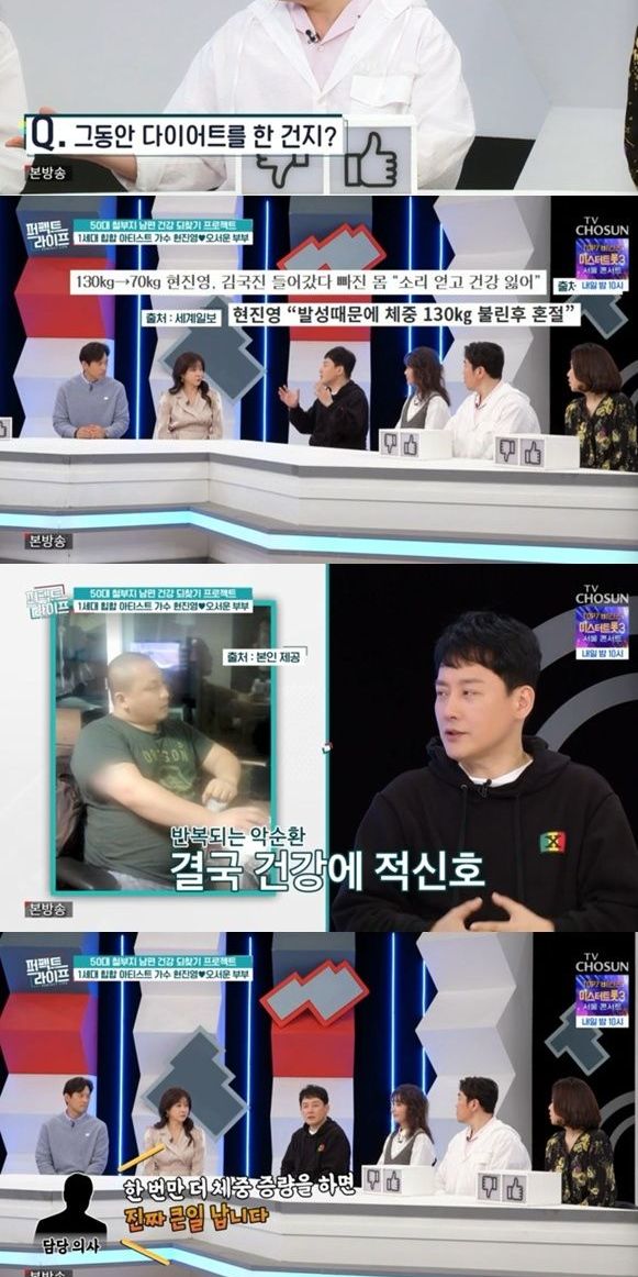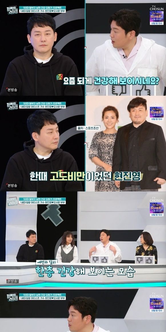 9일 방송한 TV CHOSUN '퍼펙트 라이프'에서는 전문가의 걱정을 한몸에 받은 54세 현진영과 48세 아내 오서운 부부의 일상이 공개됐다.