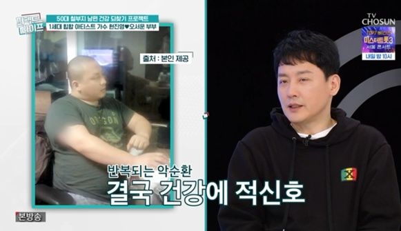 현진영은 "목소리 톤을 바꾸려고 살을 130kg 찌우고 녹음하고 녹음 끝나고 활동할 때는 70kg 대로 뺐다. 그걸 한 세 번했다. 병원에서 한 번만 더 목소리를 바꾸려고 찌우거나 그러면 큰일 난다며 기저귀 찬다는 소리까지 하더라"라고 이야기했다.