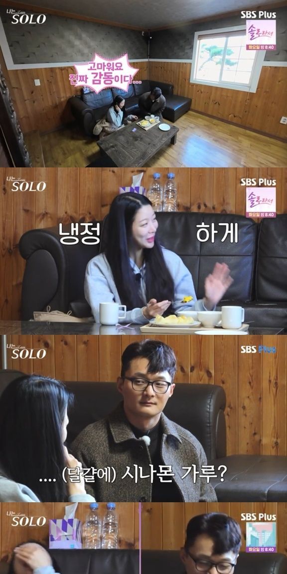 9일 방송한 ENA·SBS Plus 리얼 데이팅 프로그램 ‘나는 SOLO’에서 25기 영식은 미경을 위해 음식을 만들어줬다.