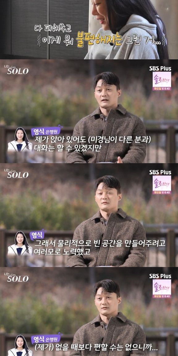 영식은 인터뷰에서 "앉아 있어도 대화할 수 있겠지만 없을 때보다 편할 수는 없으니 물리적으로 빈 공간을 만들어주려고 했다. 미련 없이 후회 없이 다 알아봐야 더 빨리 더 확고하게 내게 집중할 수 있다고 생각했다"라며 희망회로를 돌렸다.