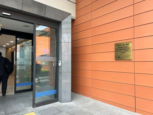 경상남도 양산에 위치한 한국필립모리스 양산 공장 입구에 '담배연기 없는 빌딩' 현판이 붙어져 있다. =배예진 기자